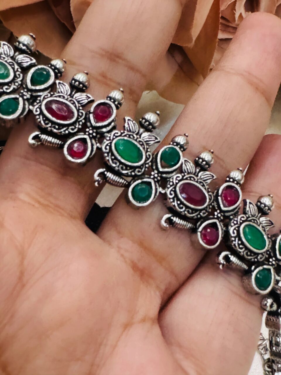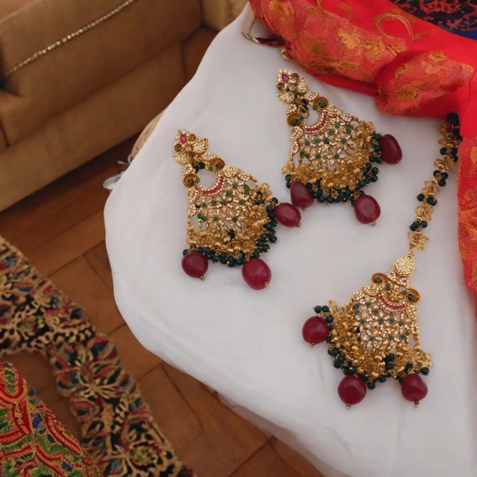 Handcrafted with exquisite detail and stunning elegance, this highest quality earrings and bindi set is the perfect accessory for party wear. Elevate your style with this unique and eye-catching ensemble that is sure to turn heads and make a statement.