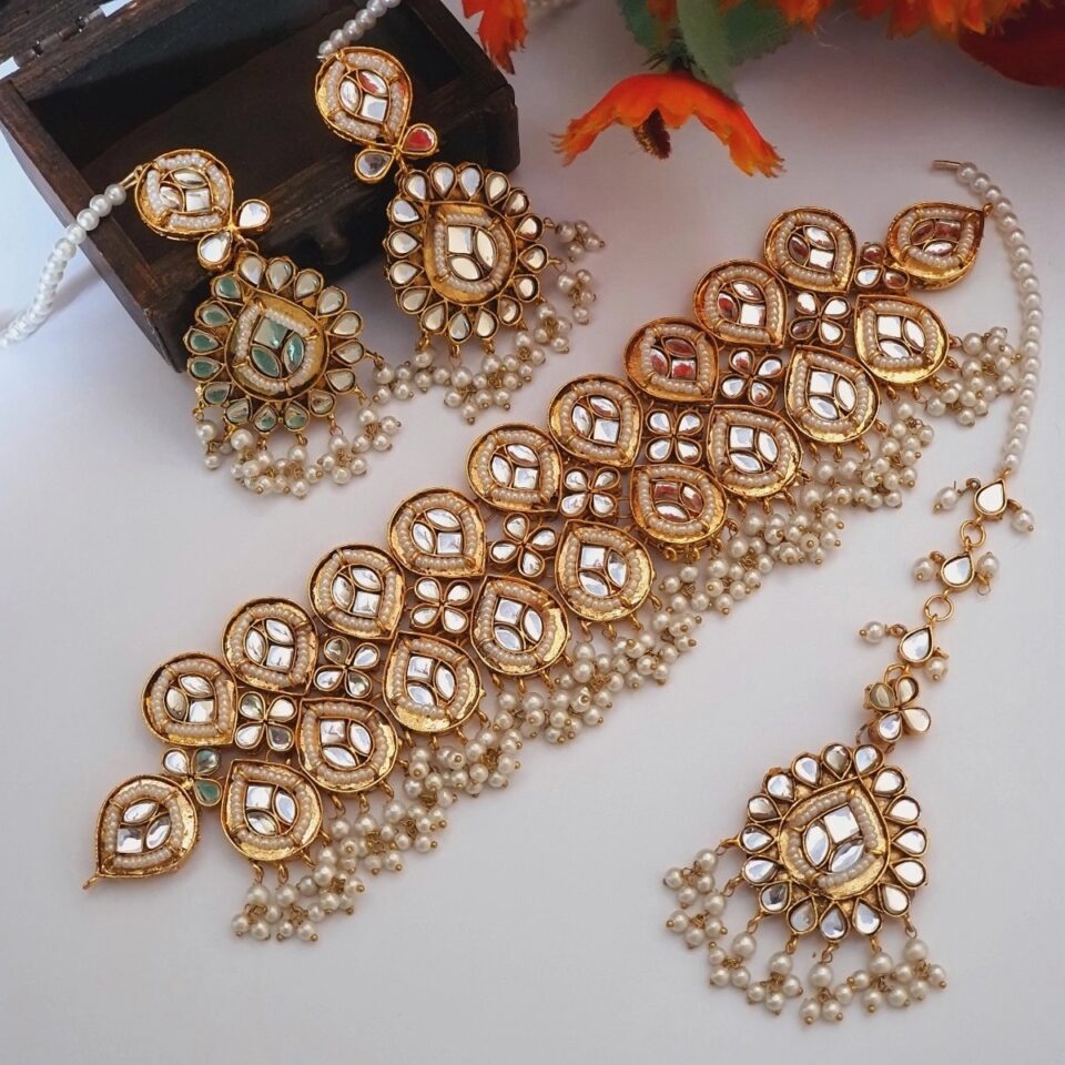 – Complete set with choker, earrings, and bindiya