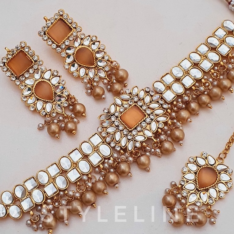 Elevate your style with these exquisite Jaipuri Kundan Chandbali Earrings, a perfect blend of tradition and modern elegance. Handcrafted with intricate detailing, these earrings feature stunning polki Kundan work set in a gold-plated frame, adorned with delicate beadwork.