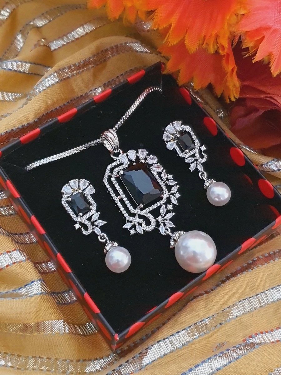 Enhance your party look with our stunning AGNES Zircon Party Wear Locket Earrings Set! Radiate elegance and style with these intricately designed locket and earrings that are sure to make a statement. Perfect for adding a touch of glamour to any outfit, these earrings are a must-have accessory for any special occasion. Shop now and shine like never before!