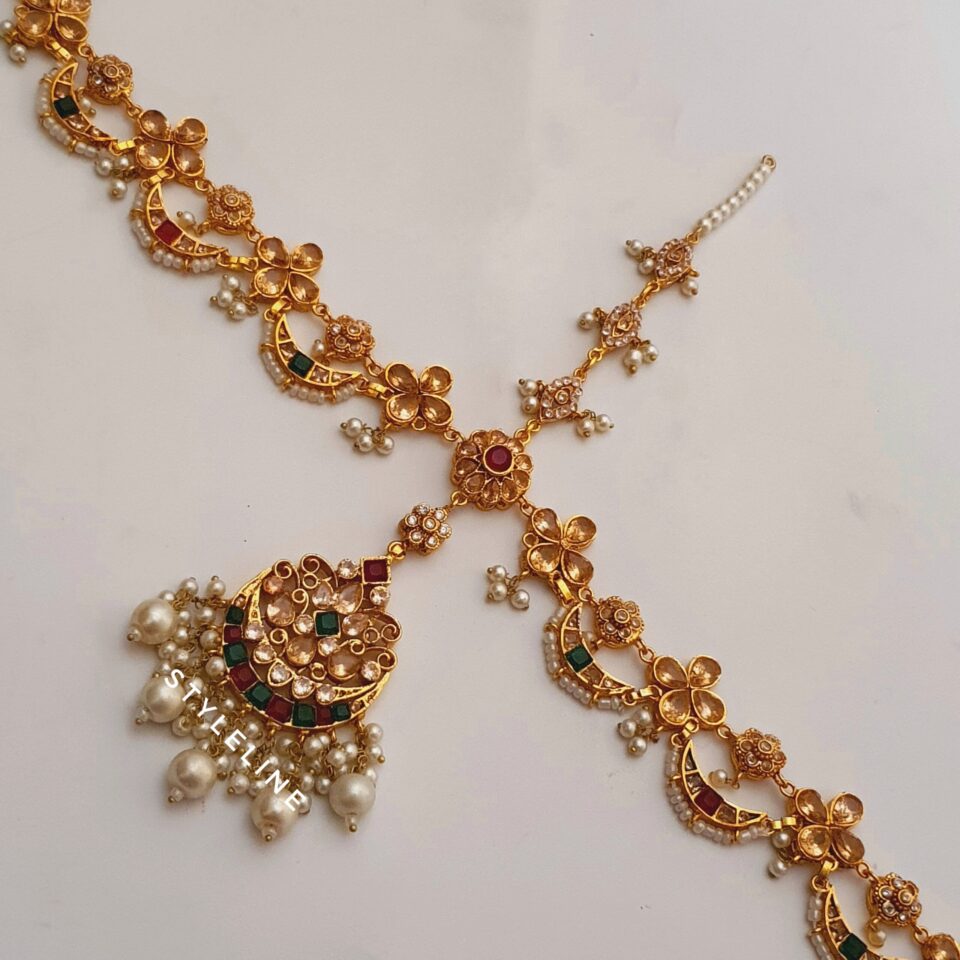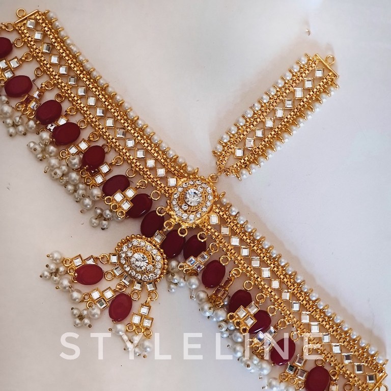 Featuring Aliya kundun headpati emblished with kundun, crystals and pearls.