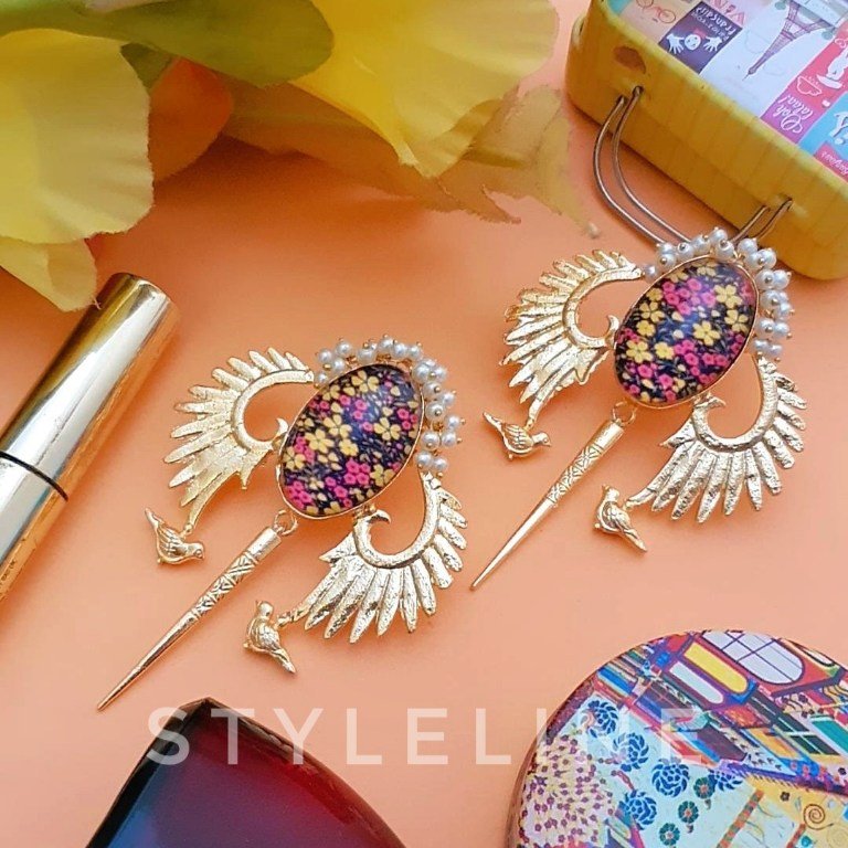 3. Pair of matching earrings with ornate designs and perfect drops.