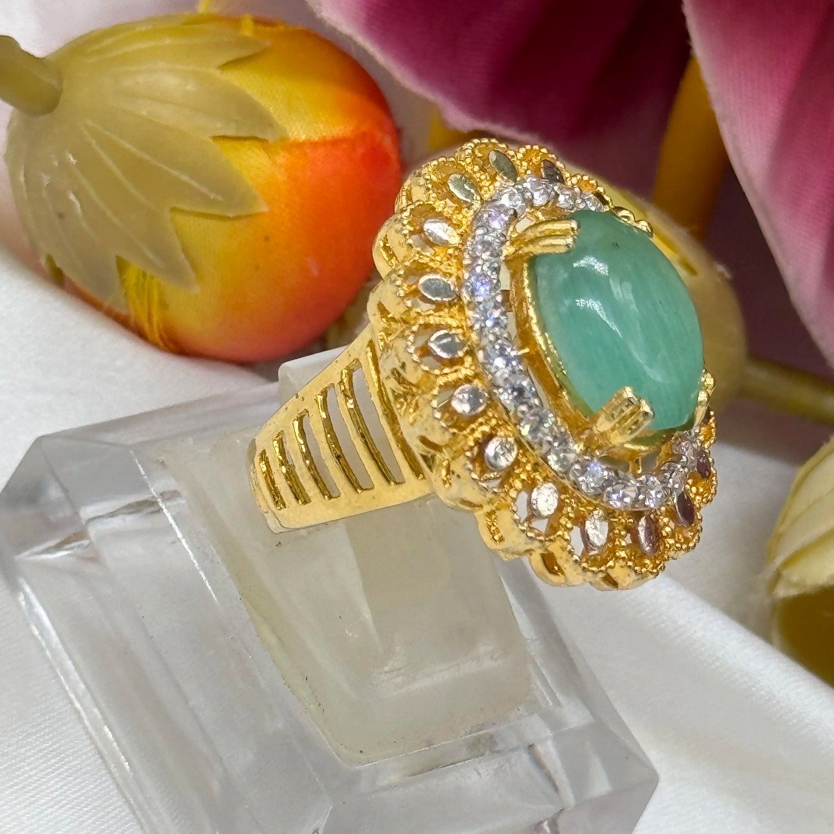 Elevate your festive look with this exquisite  gold-plated fancy ring. Crafted to perfection, this ring exudes elegance and charm, making it the perfect accessory for any special occasion. Add a touch of traditional glamour to your ensemble and shine bright at every celebration with this stunning piece.