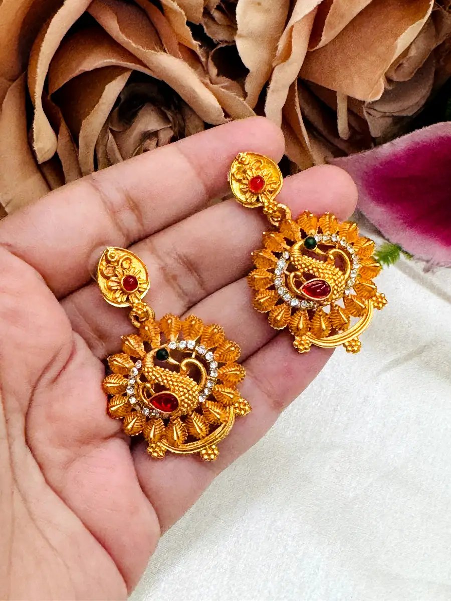 Discover timeless beauty with StyleLine’s PAKHI Choker Set, a stunning blend of traditional artistry and modern elegance. This exquisite piece is handcrafted with fine detailing, featuring a graceful peacock motif that symbolizes grace and prosperity.
